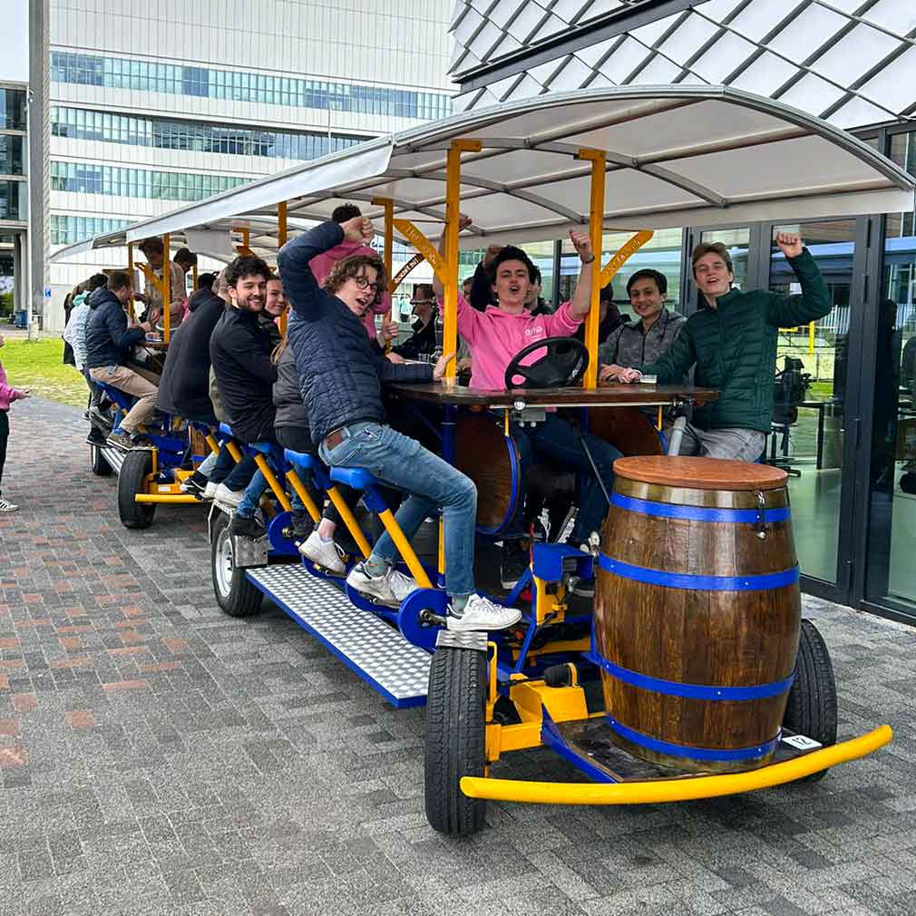Absolutely! We can organize a beer or prosecco bike tour all over the Netherlands. For more options and details, please check out our website PartyFiets.nl (opens in a new window).